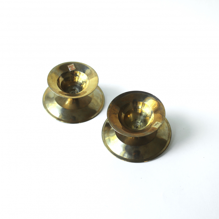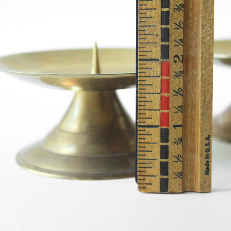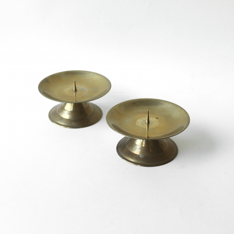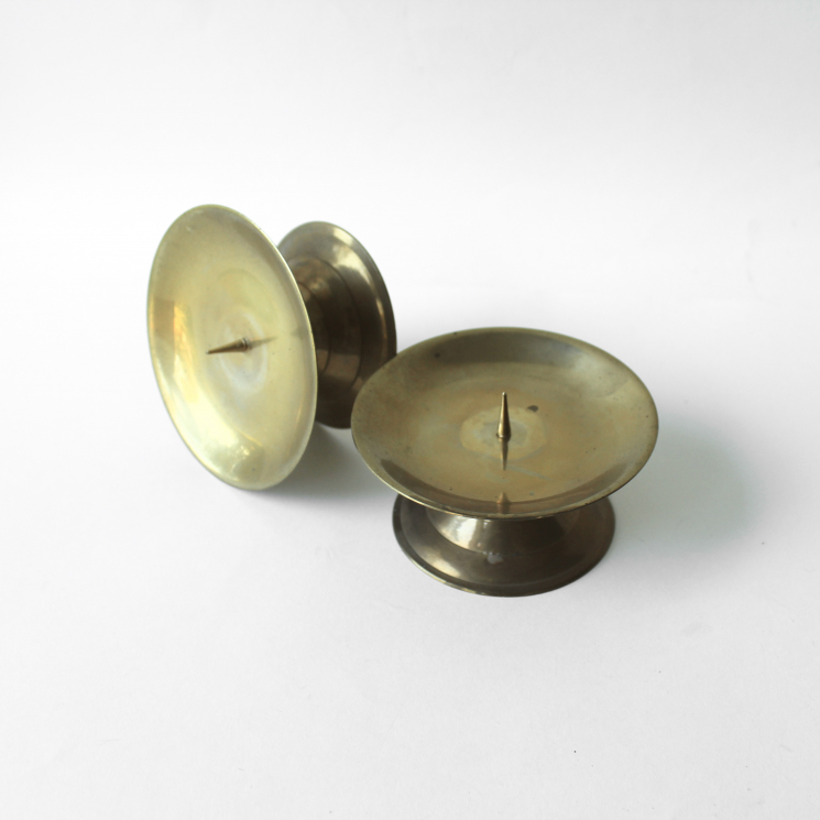 Vintage Brass Spike Pillar Candle Holder Set Mid Century Candlesticks