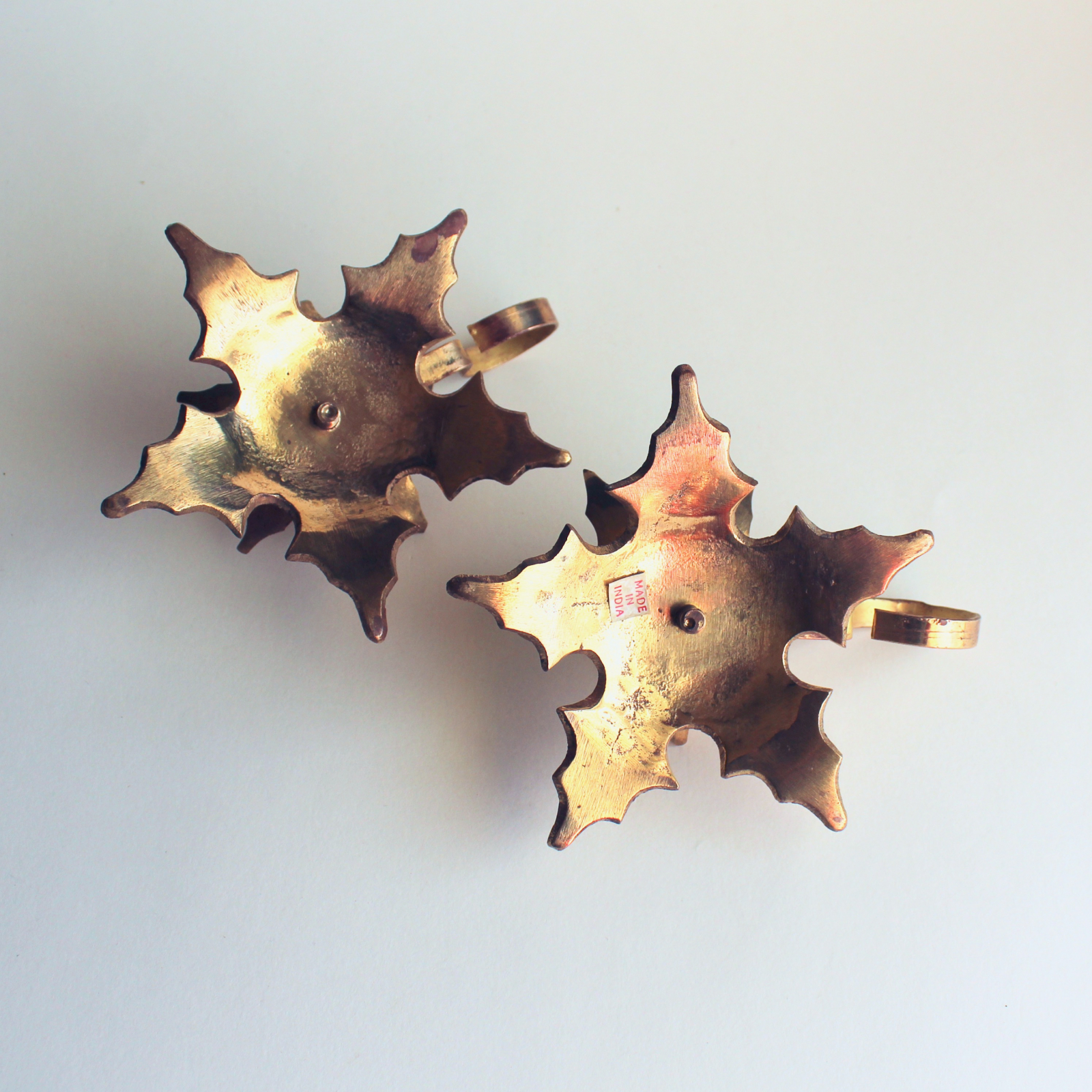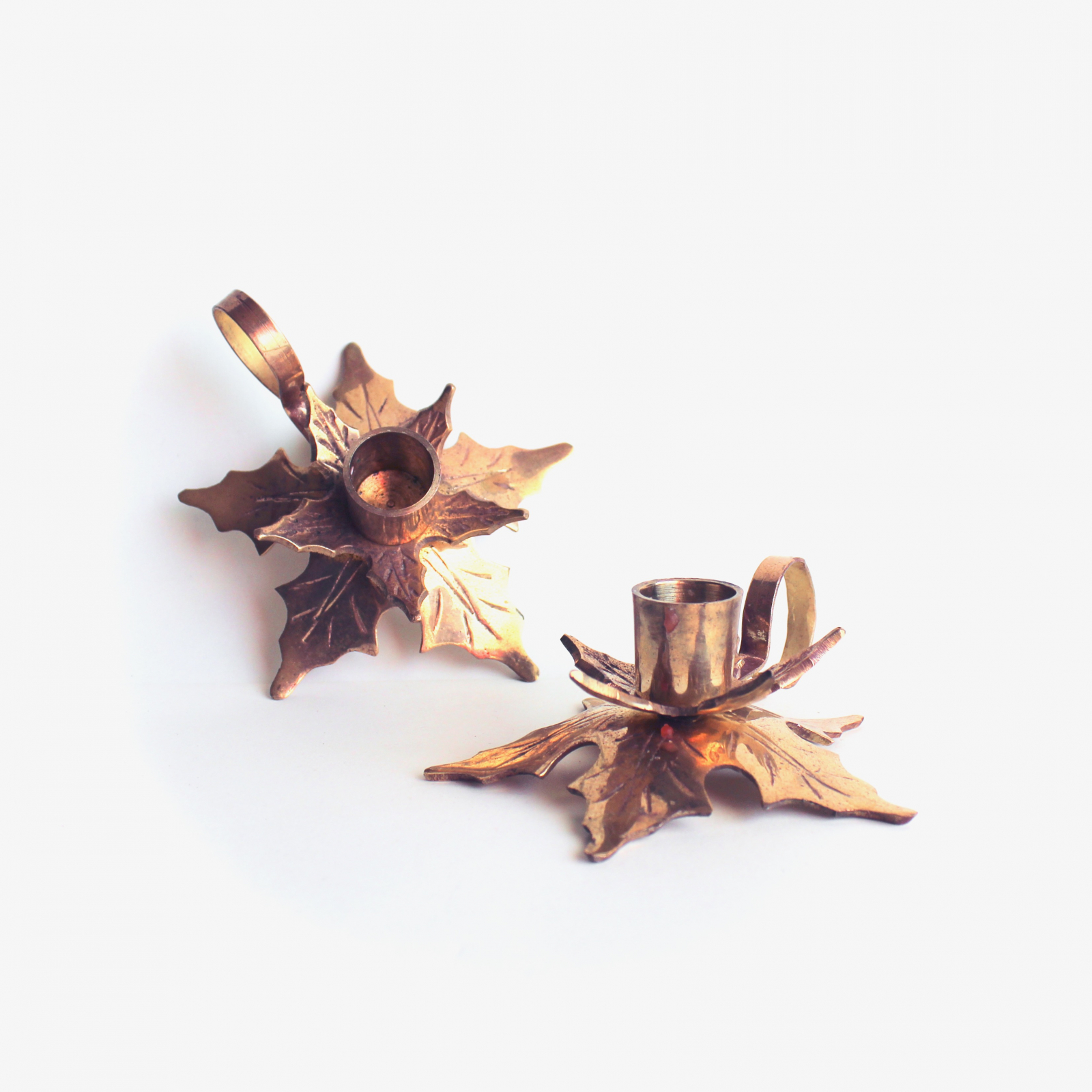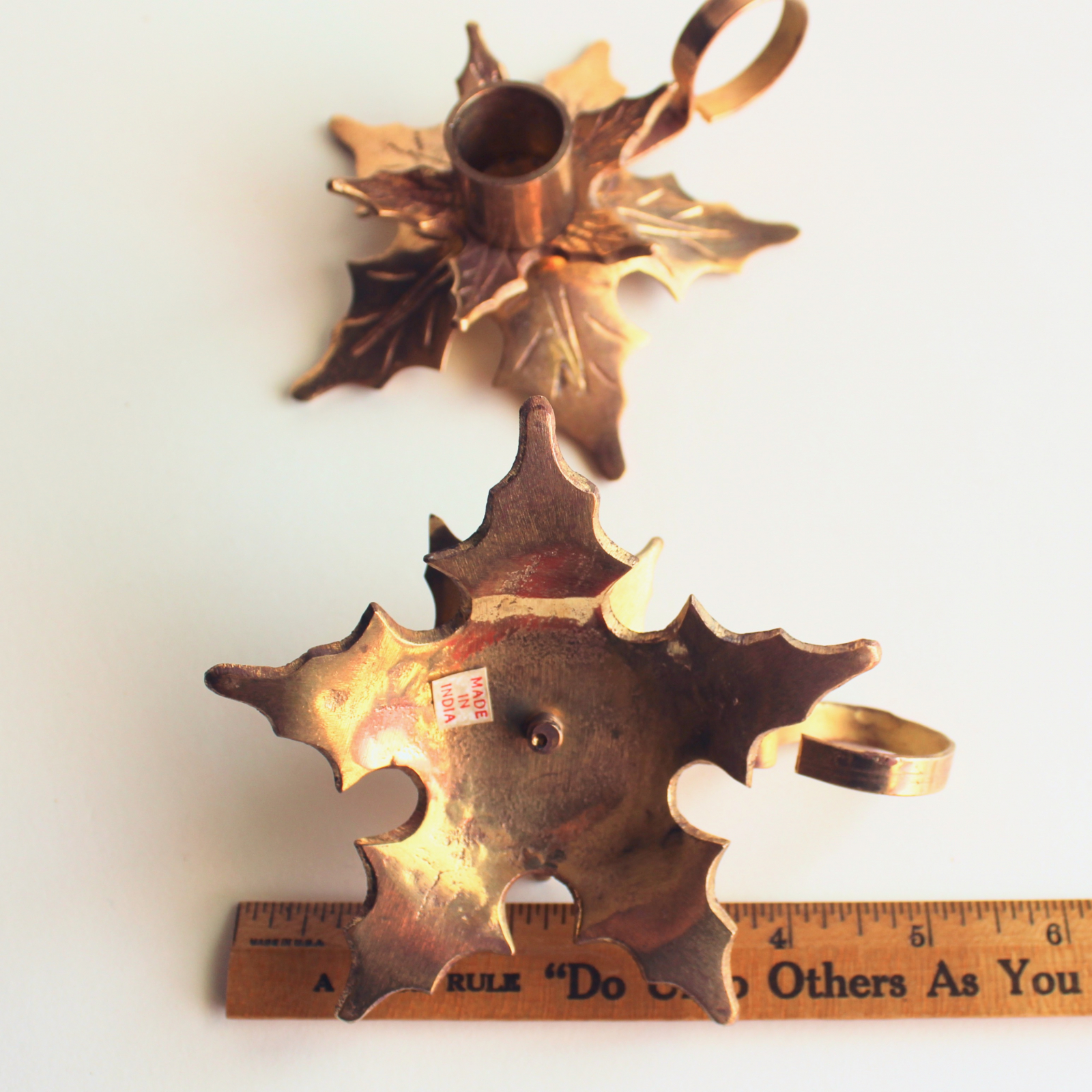 Vintage Brass Taper Candle Holder Set Mid Century Holly Leaf Candlesticks