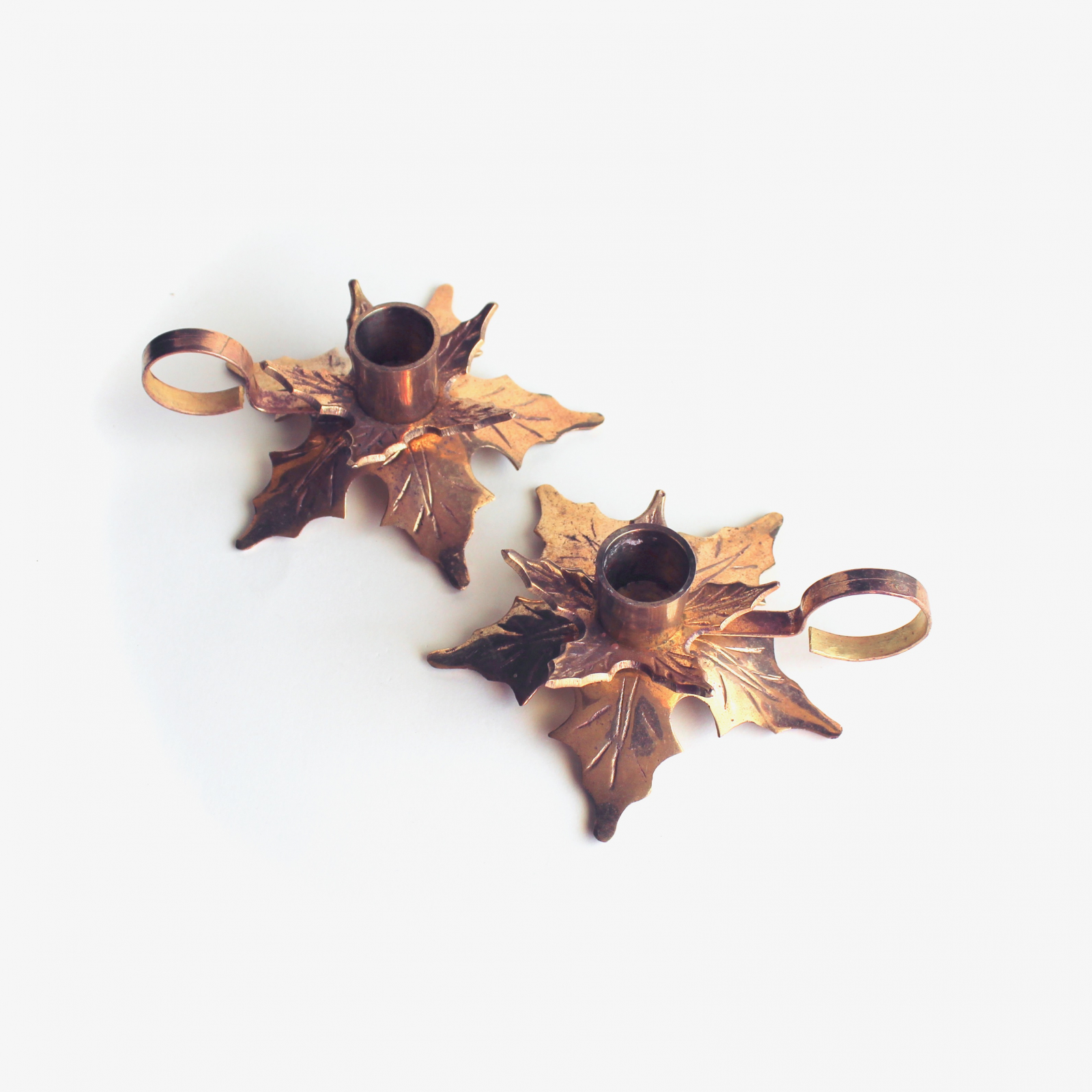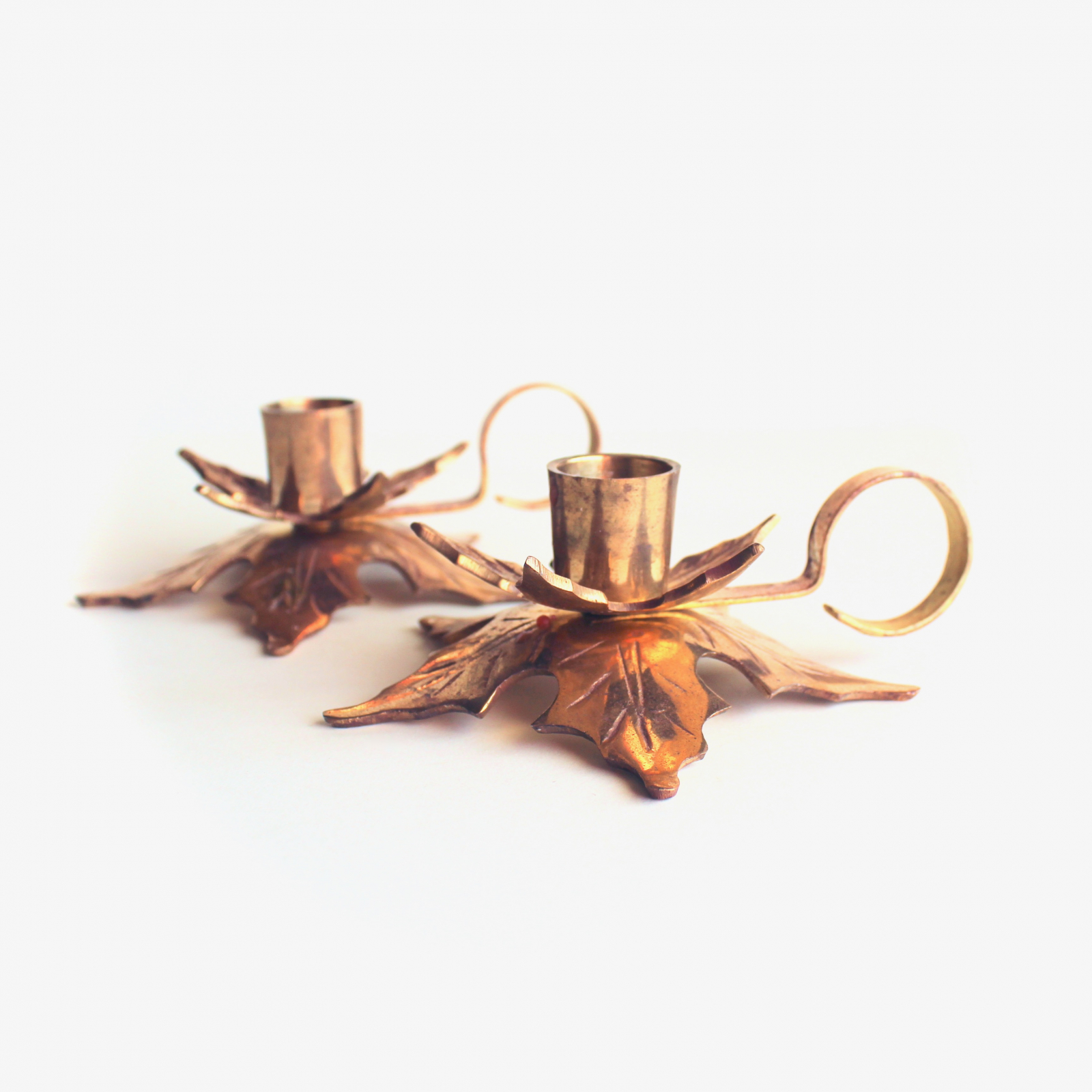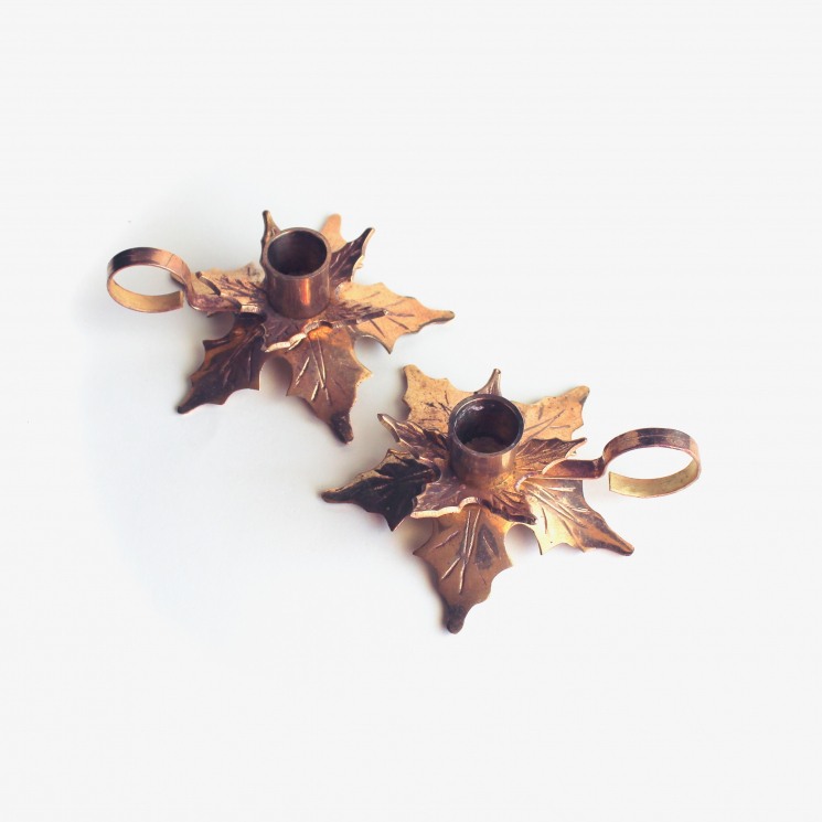 Vintage Brass Taper Candle Holder Set Mid Century Holly Leaf Candlesticks