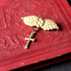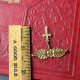 Vintage Pin Gold Tone Flower Dangle Holy Cross Christian Brooch